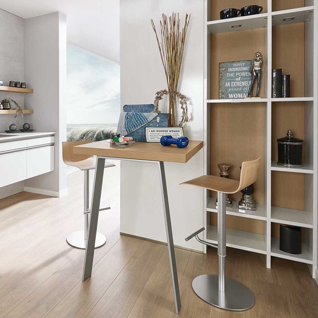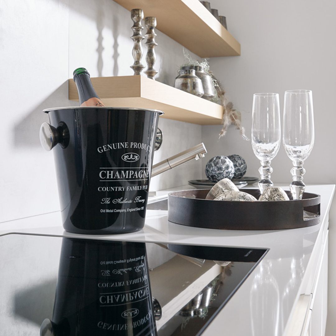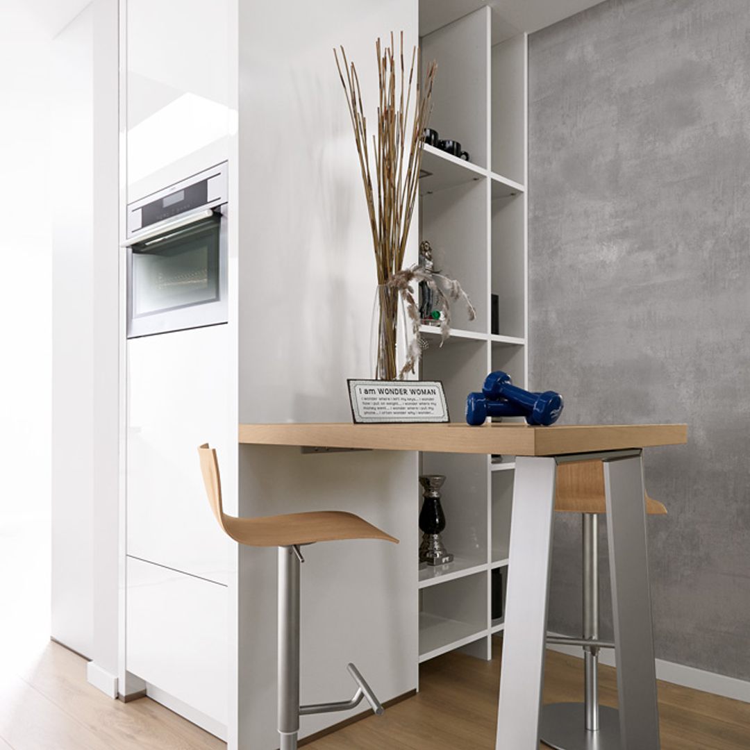 Die Regalelemente unterstützen die Küche mit klaren Strukturen und dekorativen Stauraum. Bei wenig Platzbedarf eine ideale und stylische Küche.