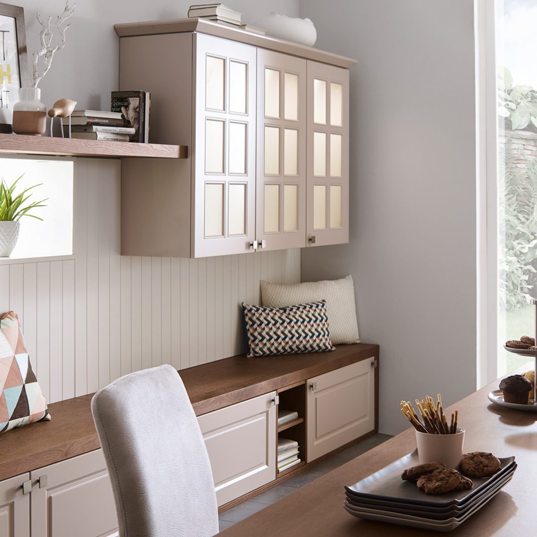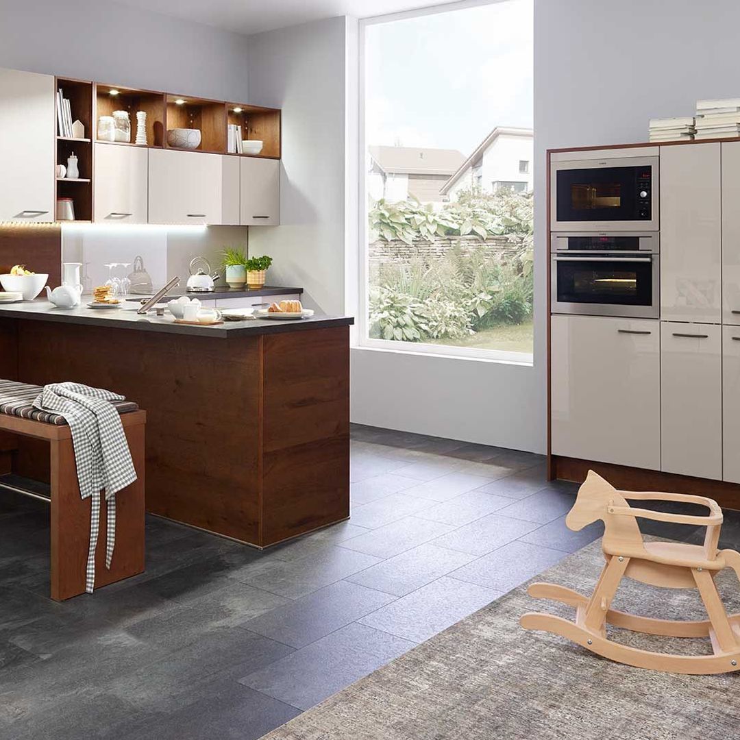 Fronten: Wildeiche Charismo antik, kaschmir, Mattlack kaschmir Schichtstoff-Arbeitsplatte: Keramik anthrazit