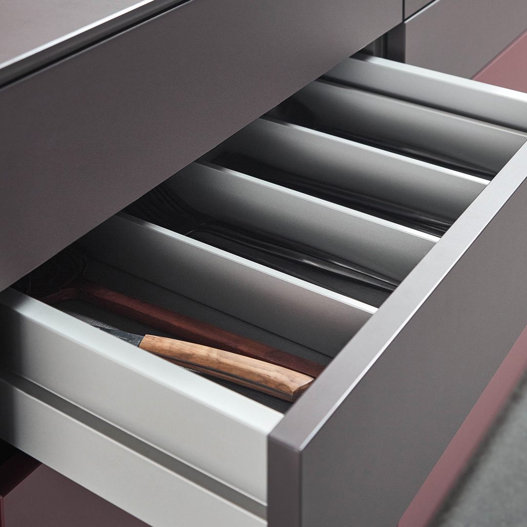 Fronten: Rosso Jaipur supermatt, cacao supermatt, Kirsche Lucia hell