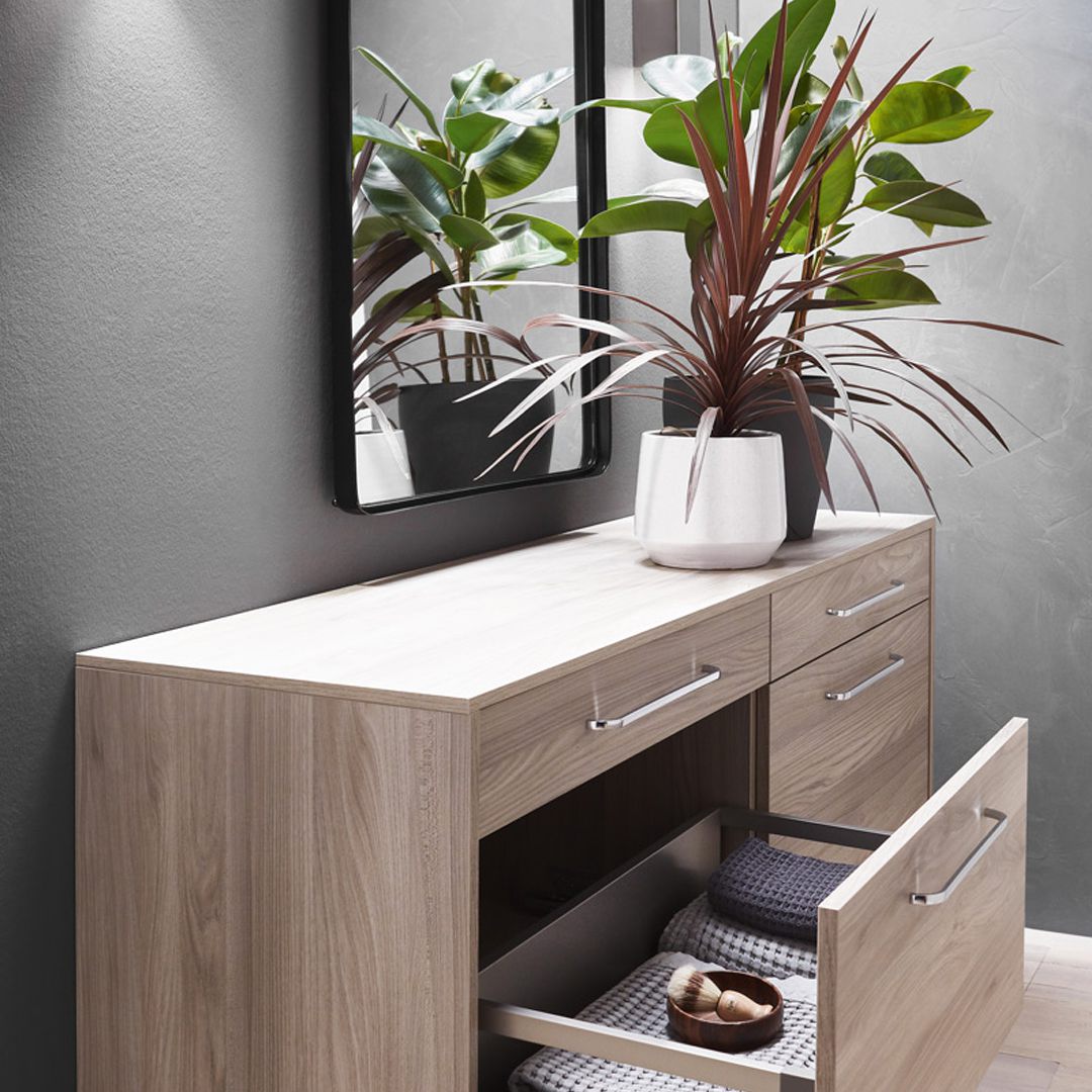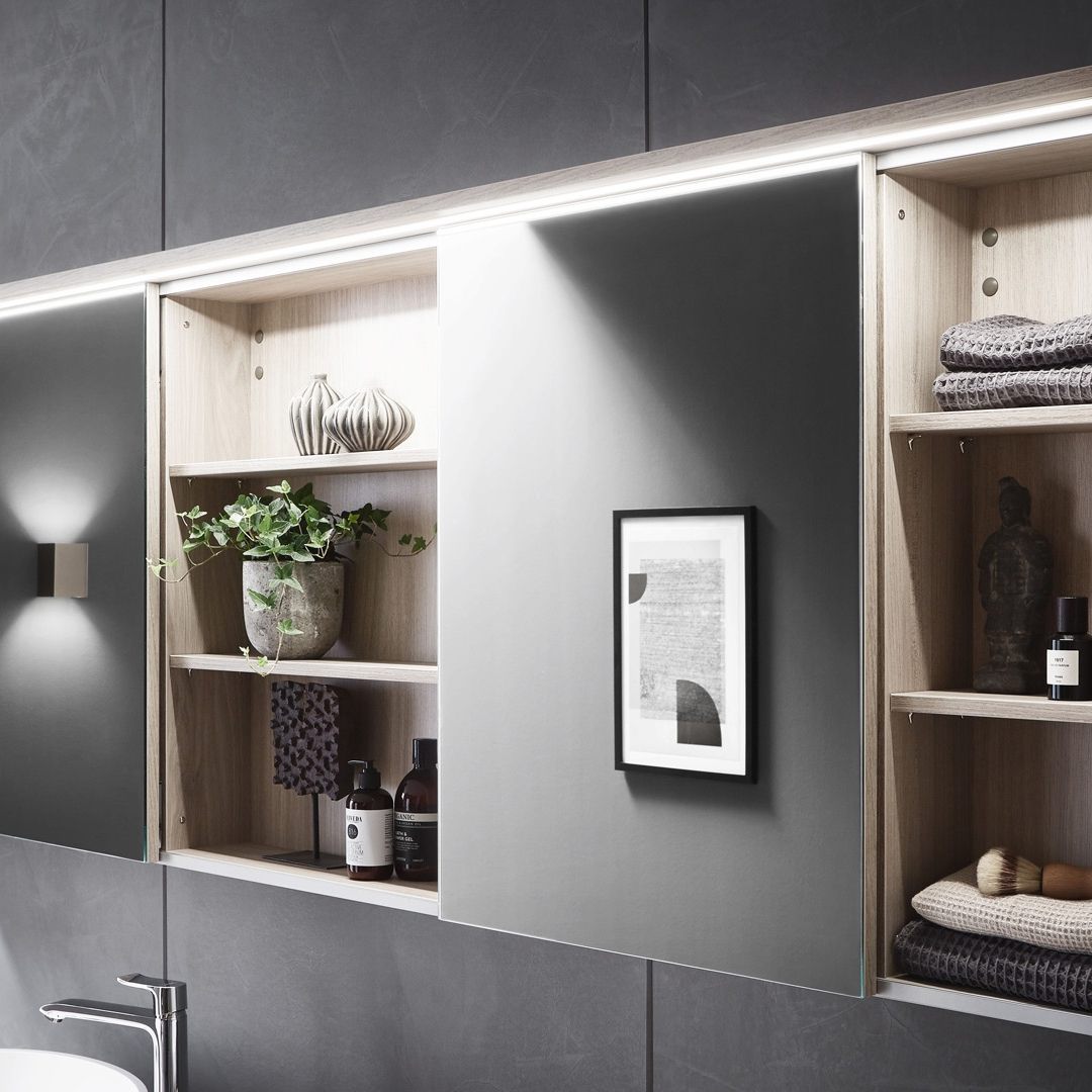 Fronten: Steinesche.Waschtischplatte: weiß supermatt.Korpus: Steinesche