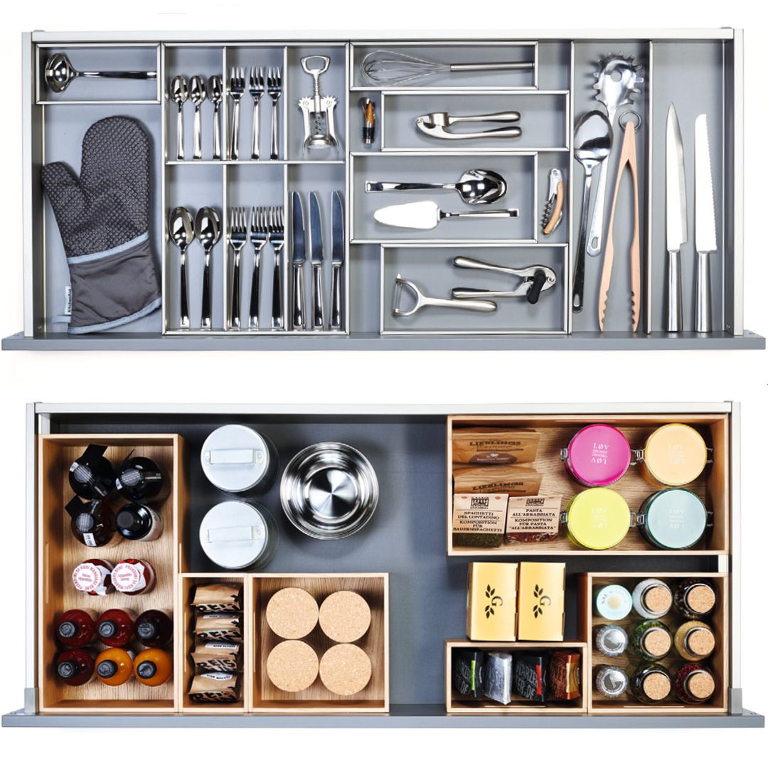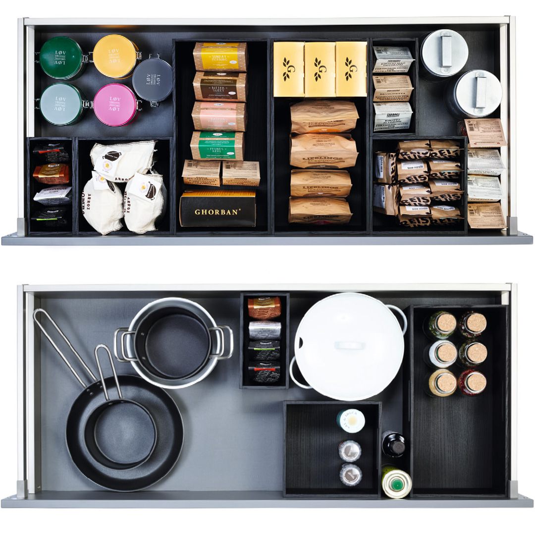 Der Variantenreichtum unserer Besteckeinsätze und Auszüge ist nahezu unendlich und macht unglaublich viel Spaß. Ganz ohne vorgegebene Raster. Sozusagen ohne Limit.