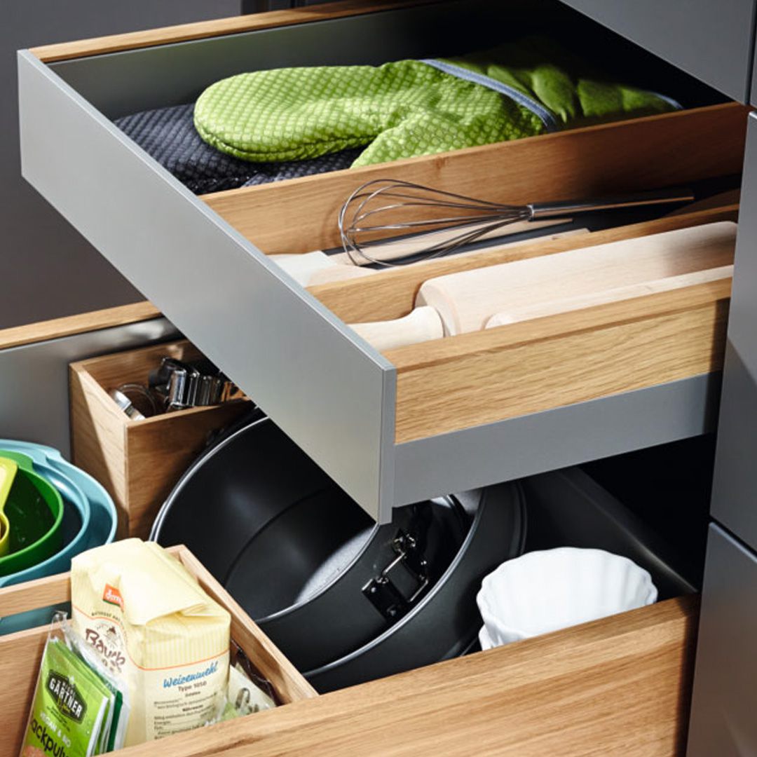Inneneinteilungen, egal ob Holz oder Metall: hier findet jedes Küchenwerkzeug seinen Platz.