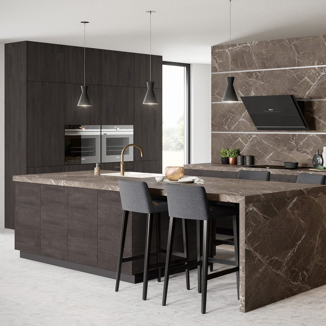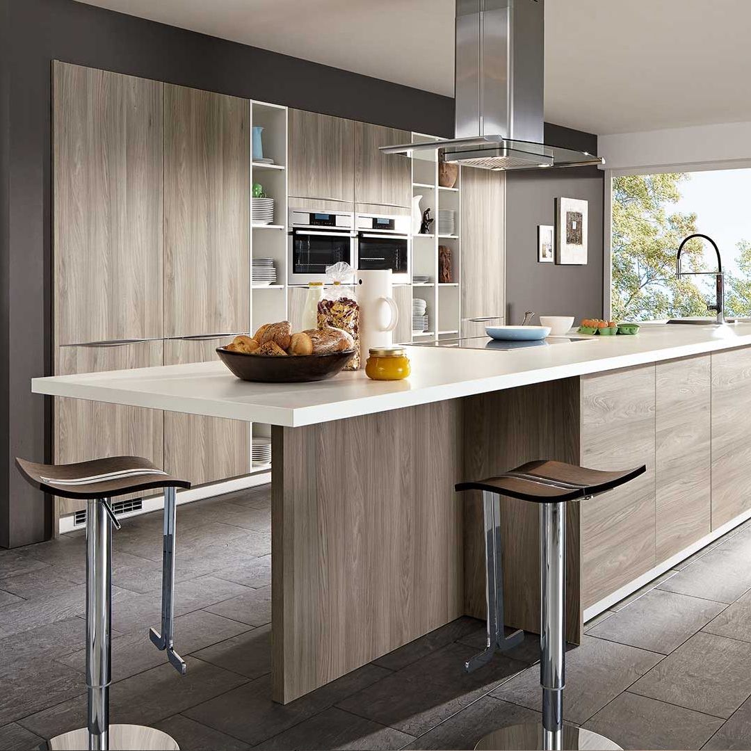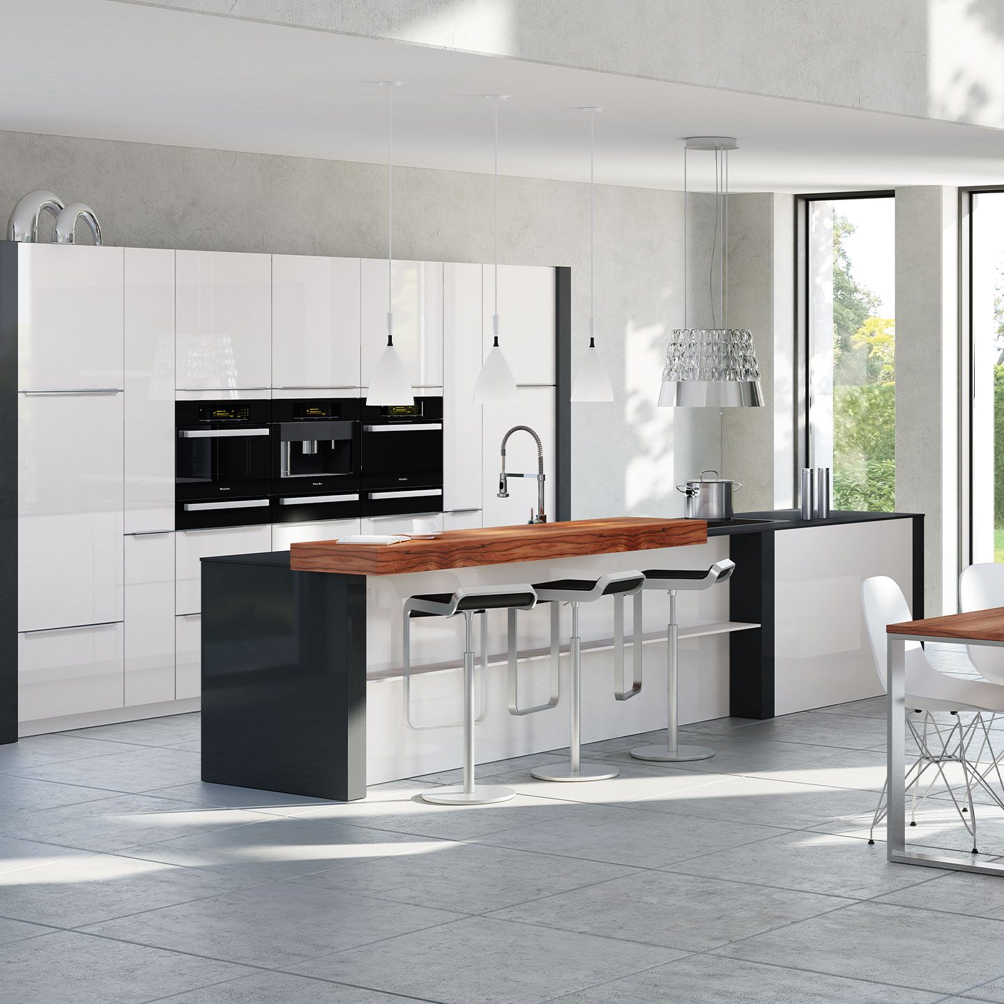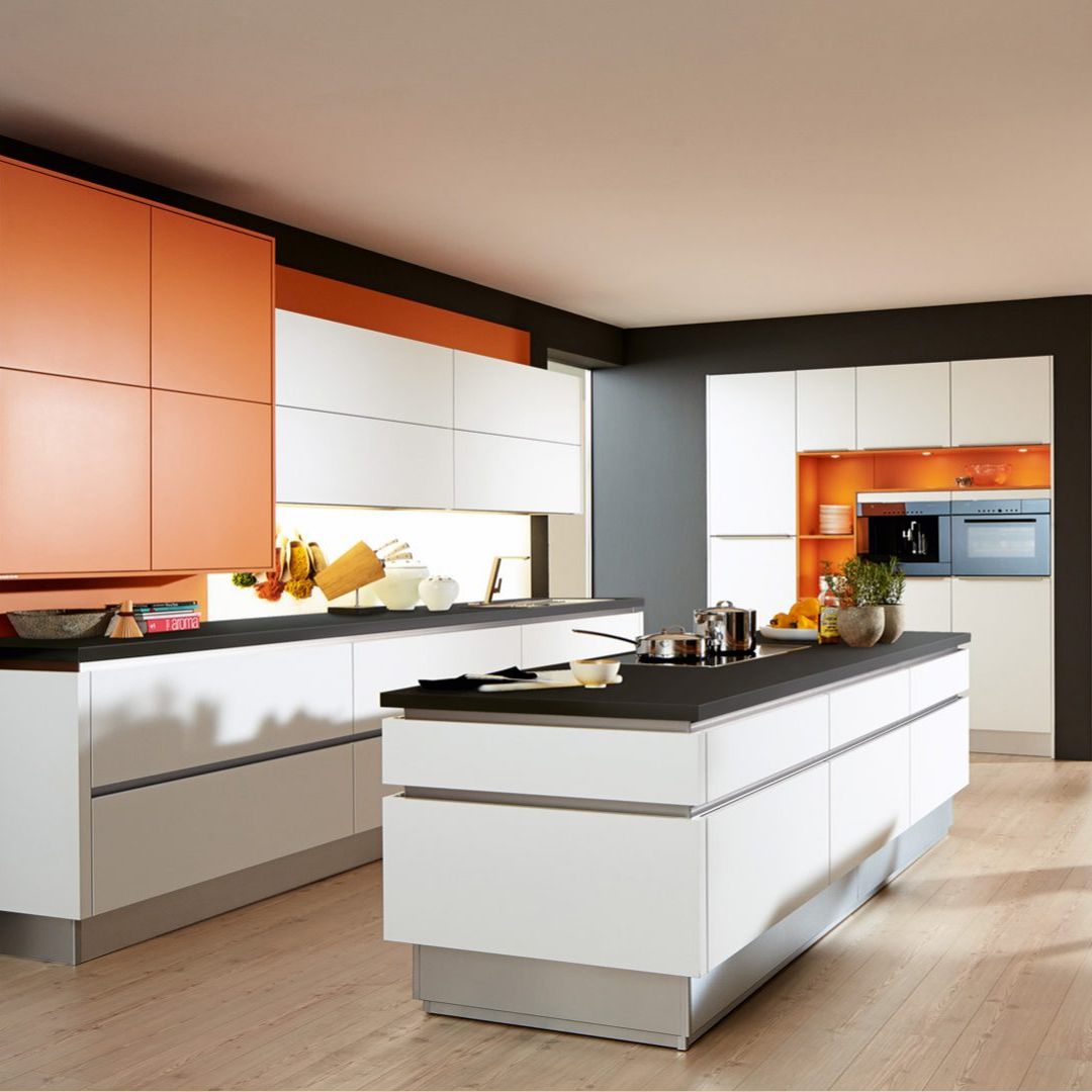 Schwarz trifft auf Weiß, unterstützt von einer Tischplatte aus Indischem Apfel. Diese Kombination verleiht der Küche eine moderne Ruhe. Der Glanz verleiht diesem Ort mühelose Eleganz. MAJA begeistert durch Einfachheit und Individualität.